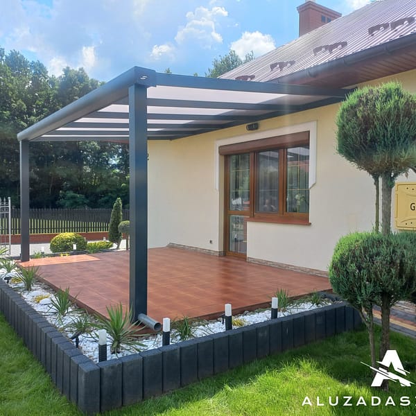 Pergola Solid może być stosowana w rozbudowanych konfiguracjach wielomodułowych, a jej konstrukcja umożliwia regulację kąta nachylenia w zakresie 5–10°, co pozwala na skuteczny odpływ wody.